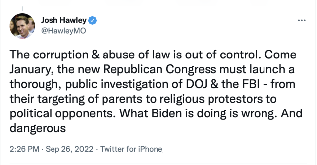 All of this comes after more than a year of your office repeatedly weaponizing the FBI and other arms of the federal government against political opponents. If you are trying to inspire confidence in your department, you are failing magnificently.