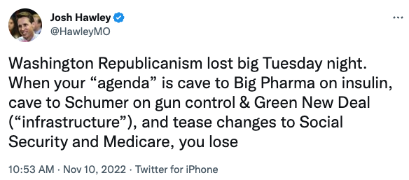 Today U.S. Senator Josh Hawley (R-Mo.) released the following statement on the failure of Washington Republicanism and the path forward for the Republican Party: