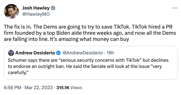 Senator Hawley also called out both CNN and Democrats for defending TikTok ahead of the hearing: