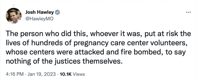 Hawley Demands Biden Take Action Following Attacks on Pro-Life Groups, Intimidation of Justices