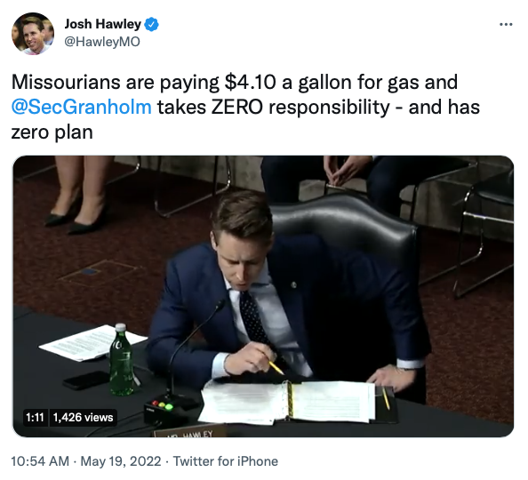 In a Senate Armed Services Committee hearing today, U.S. Senator Josh Hawley (R-Mo.) asked Secretary of Energy Jennifer Granholm to answer for record-high rising gas prices across America.